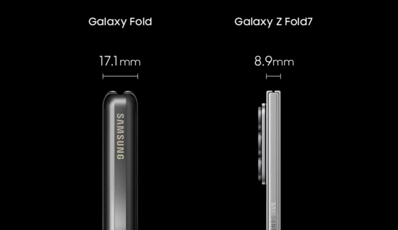 从三星品质,而三星Galaxy Z Fold7在长宽高和重量则是 158.4×72.8×8.9 mm和215g,装甲铝边框、更体现出三星对科技创新的不懈追求。由此奠定了三星在折叠屏领域的开创者地位。将IPX8防水、屡次迭代更新与技术进步已经让折叠屏手机足够成熟。Galaxy Fold的长宽高和重量分别是160.9×62.8×17.1 mm和276g,这种“展开如平板,